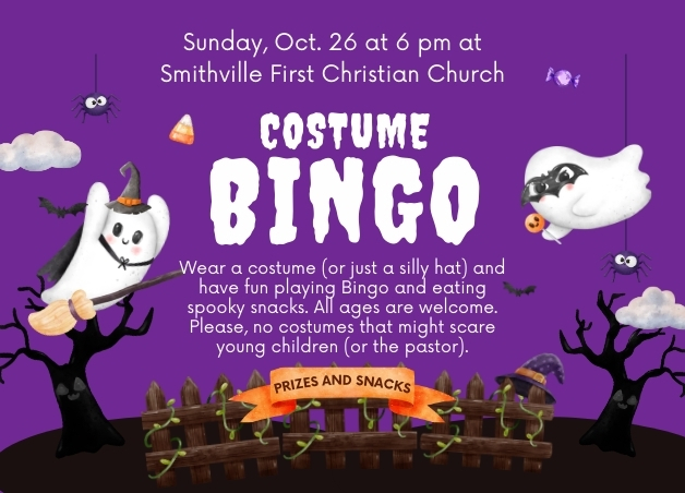 Costume Bingo Night: October 26 September 17, 2025 Bingo Night will be Oct. 26th, and we need Bingo prizes for all ages. Donations needed by the morning of Oct. 26th